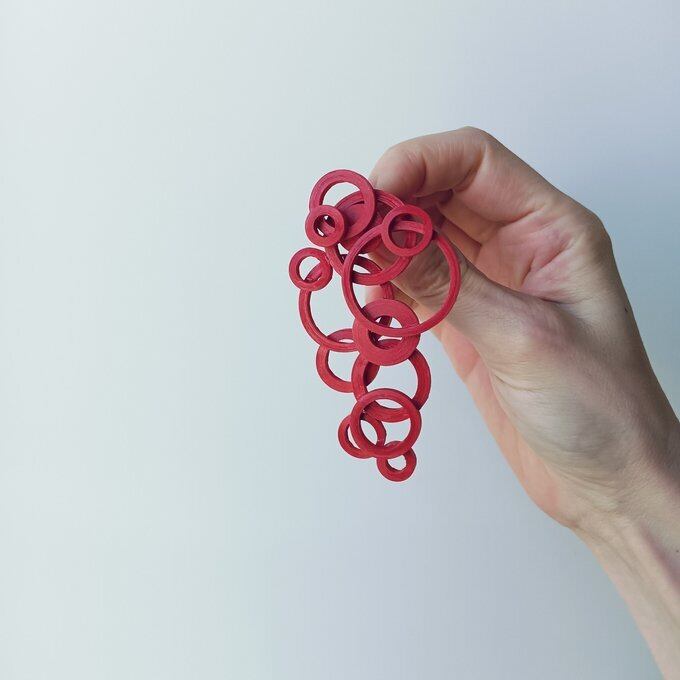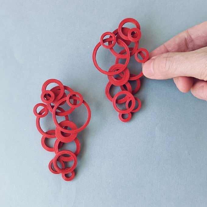 大小の輪のパーツを組み合わせて、シンプルながらも印象的なデザインに仕上げました。