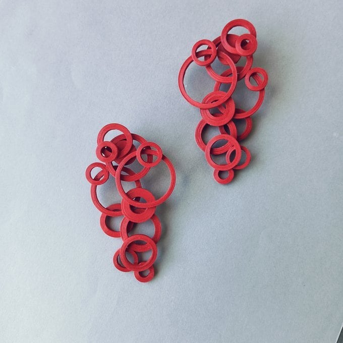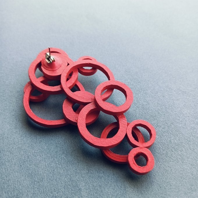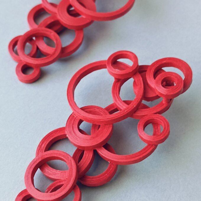 パッと目を引く、大きくて個性的な紙製ピアス(イヤリング)です。
