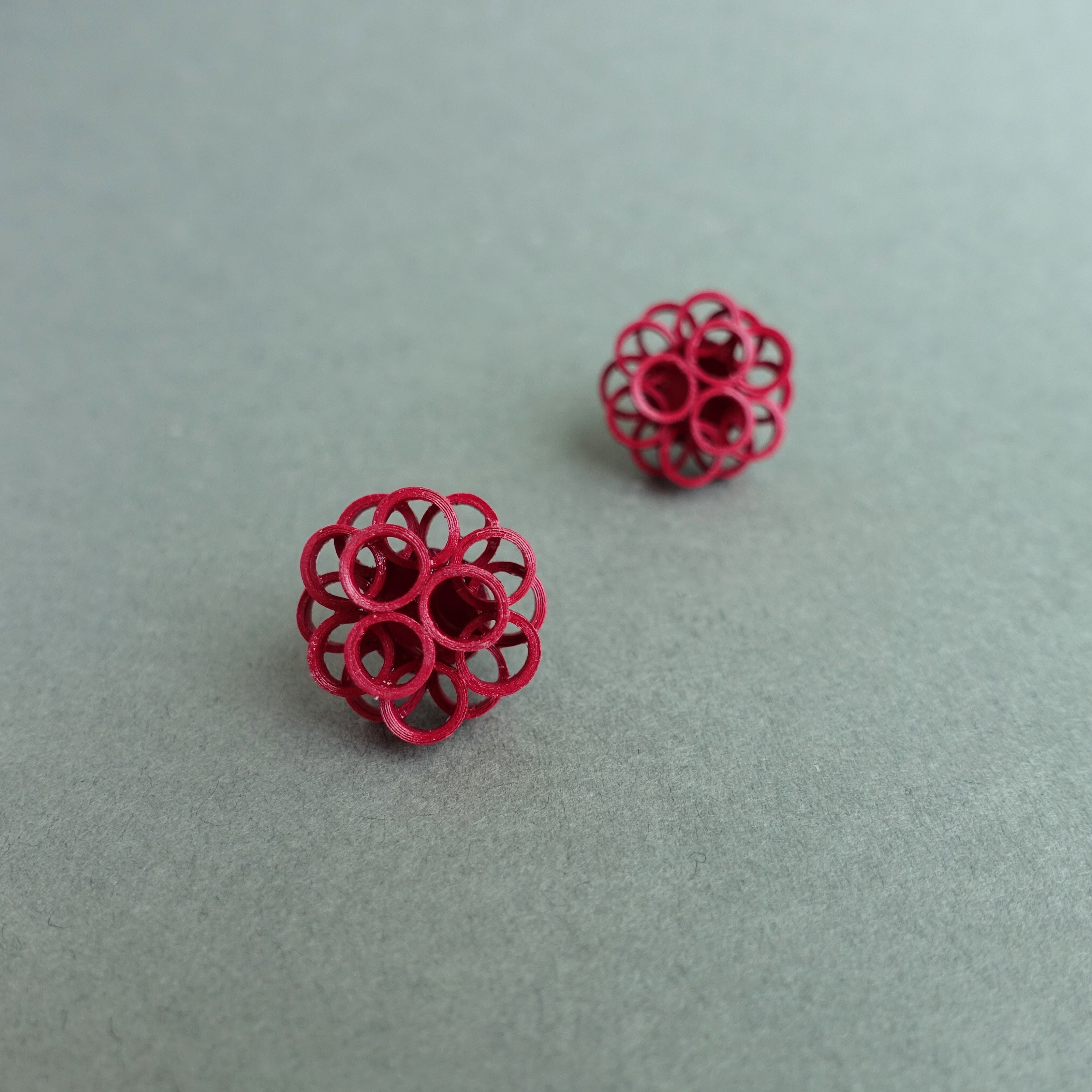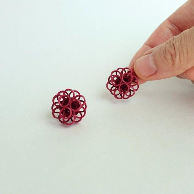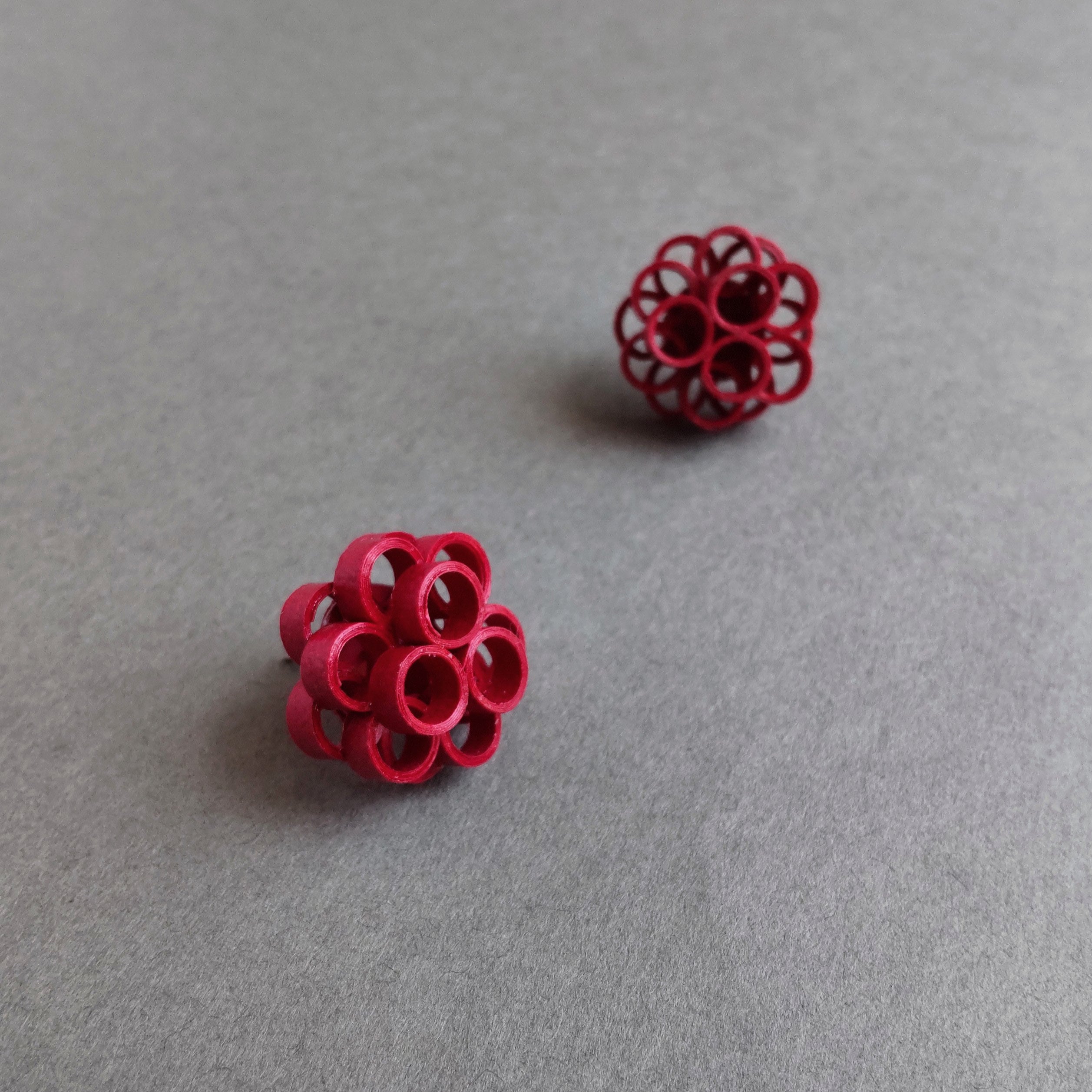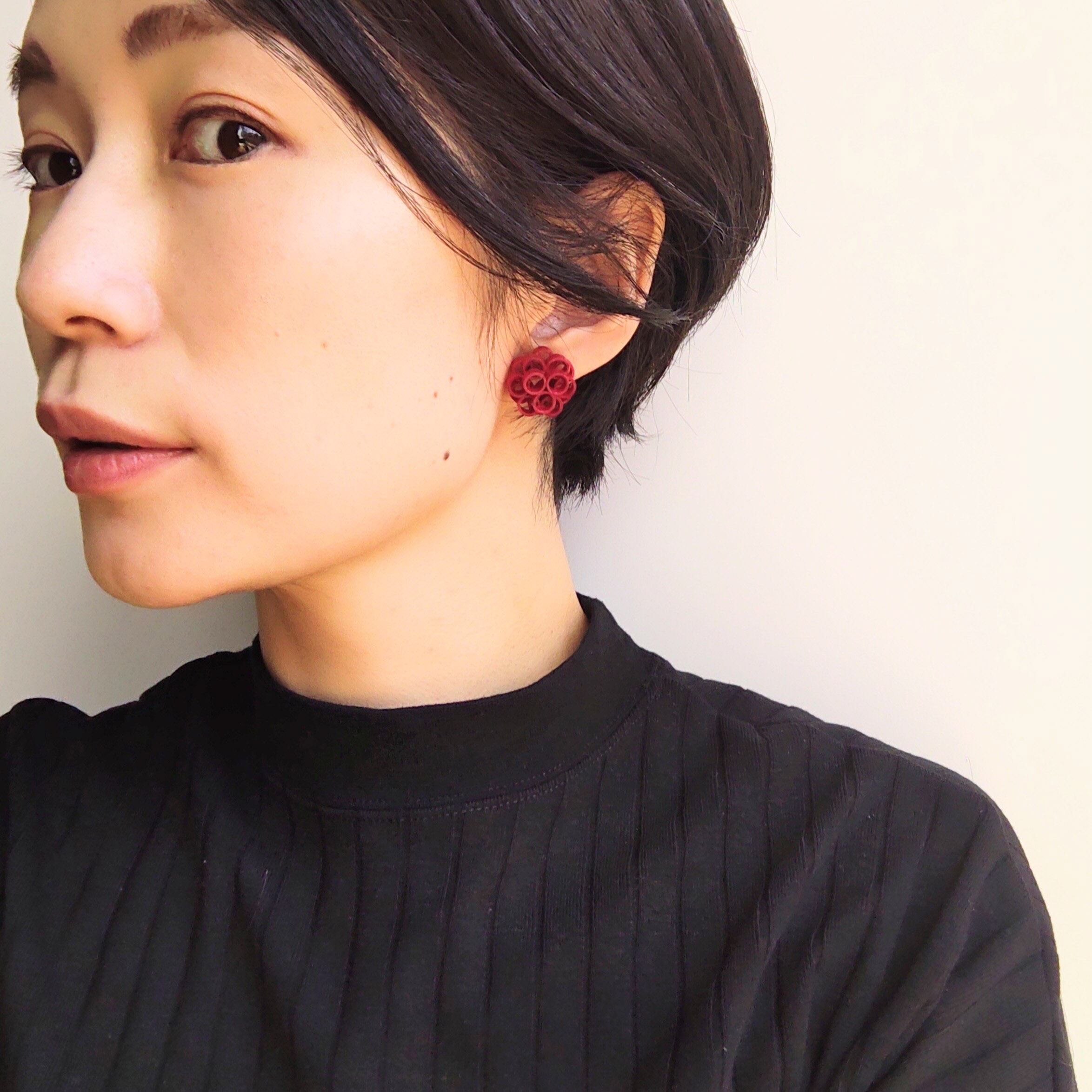 艷やかな赤い紙製ピアス(イヤリング)。