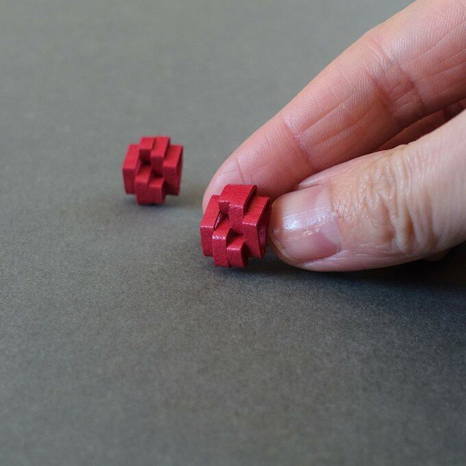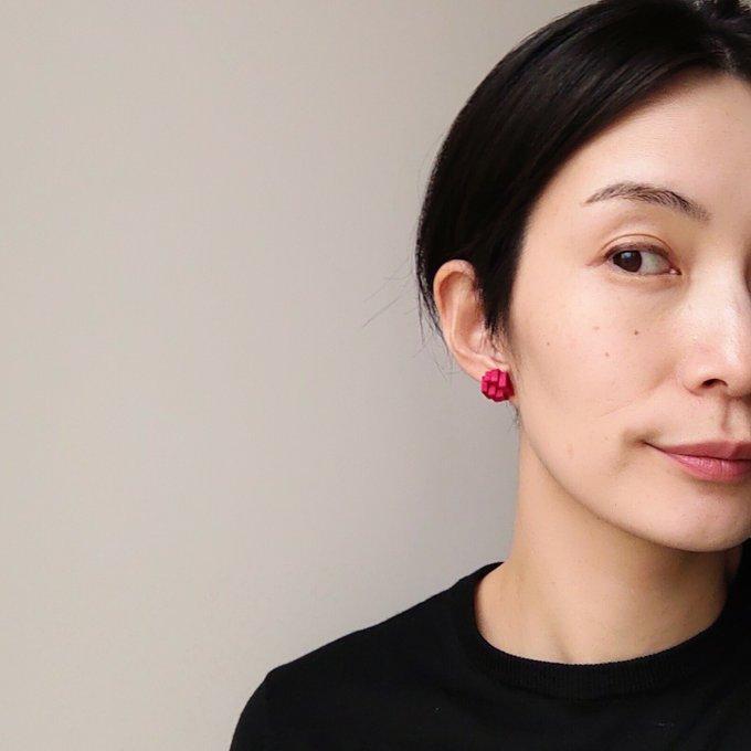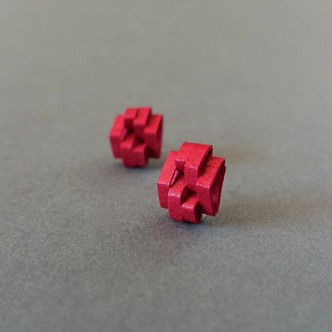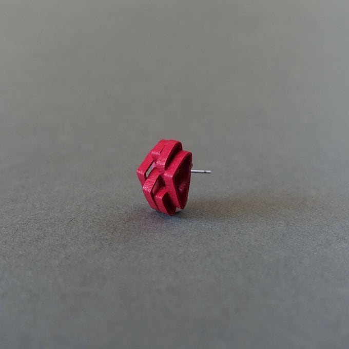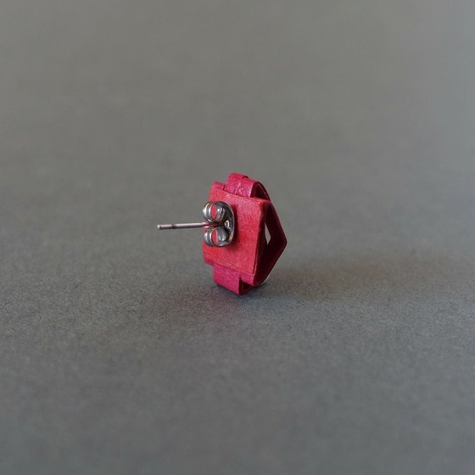 鮮やかな赤色が印象的な、軽い紙製ピアス(イヤリング)。
