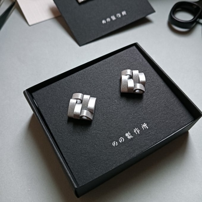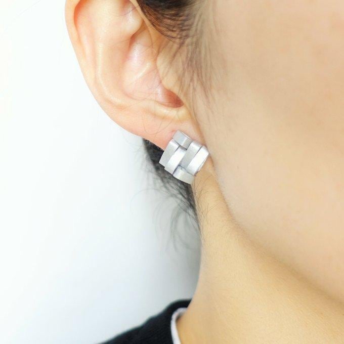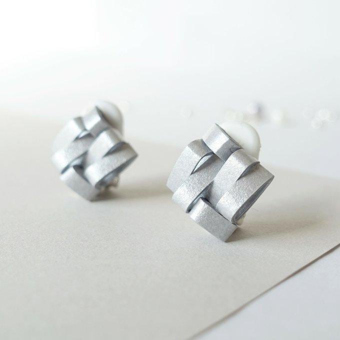 凛としたシルバーカラーのスクエア型・紙製イヤリング(ピアス)です。