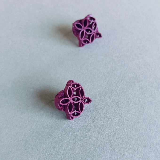 紙でつくった小さな輪を、一つ一つ組み合わせて作った、透かし模様が印象的なアクセサリー。