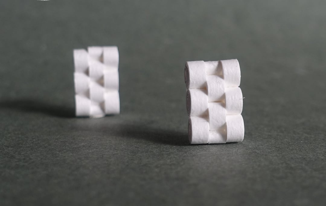 このキットでは、紙を巻いて作品作りをする「ペーパークイリング」という手法で、美しい白いピアス(イヤリング)を作ることができます。