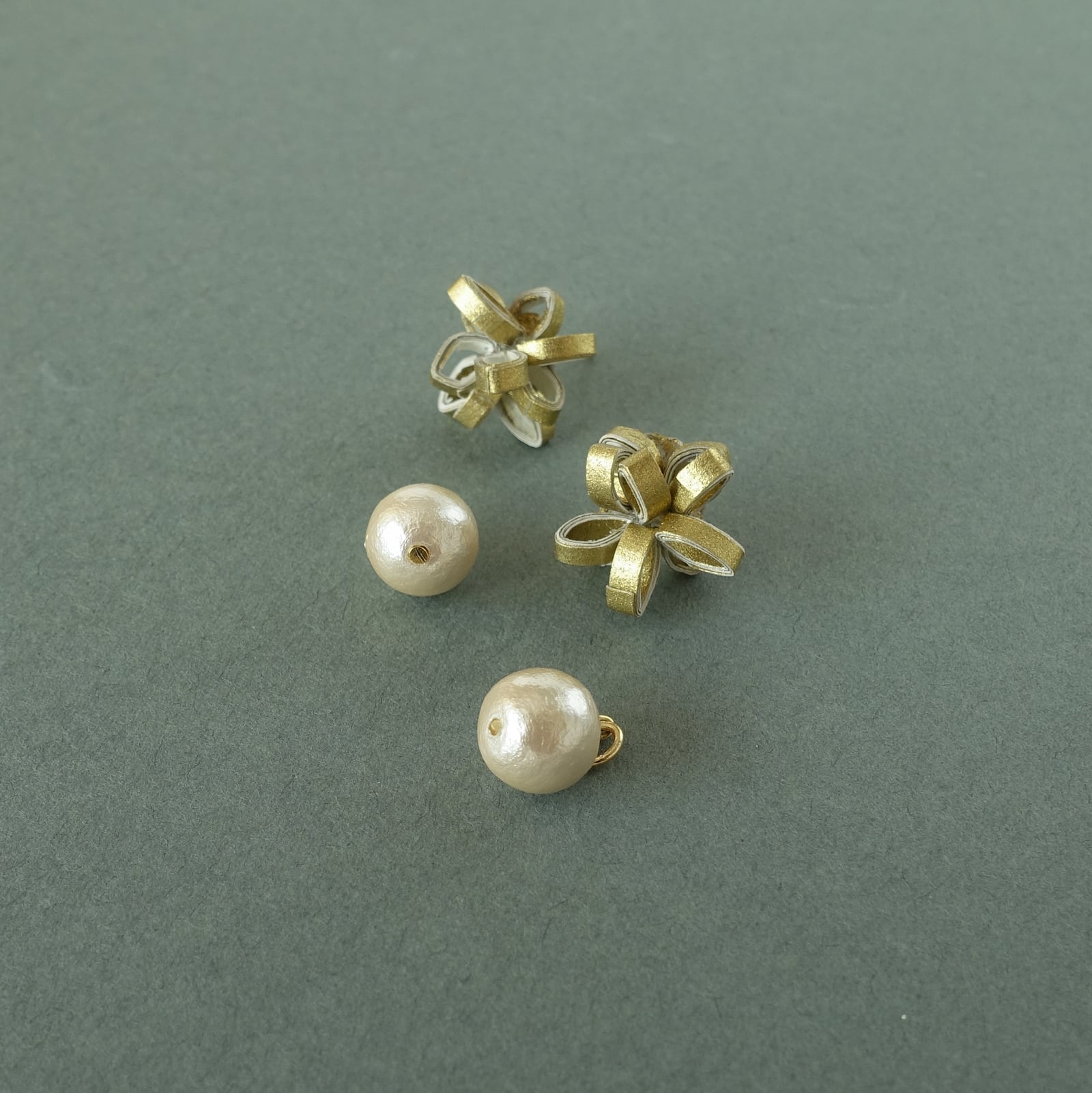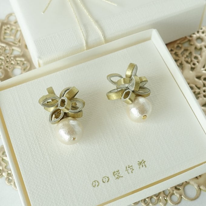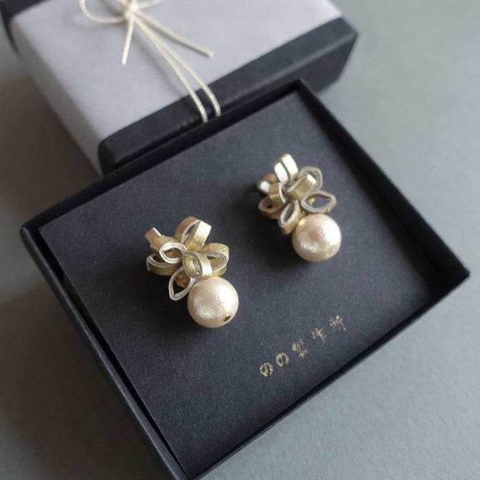 ゴールドの和紙と、コットンパールを組合せた上品なピアス(イヤリング)です。