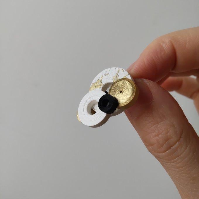 輪をつらねたモチーフに、きらりと光るゴールドがアクセントになっています。