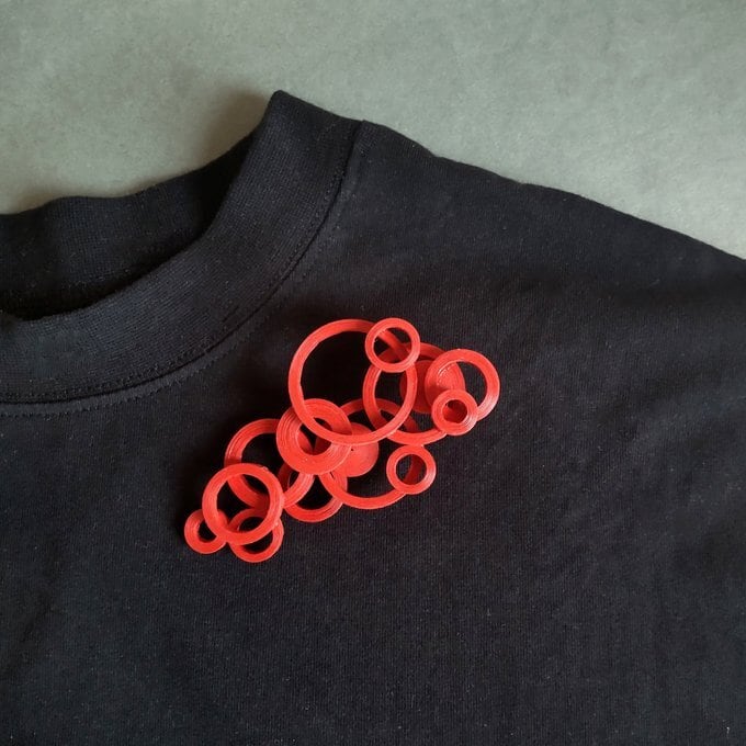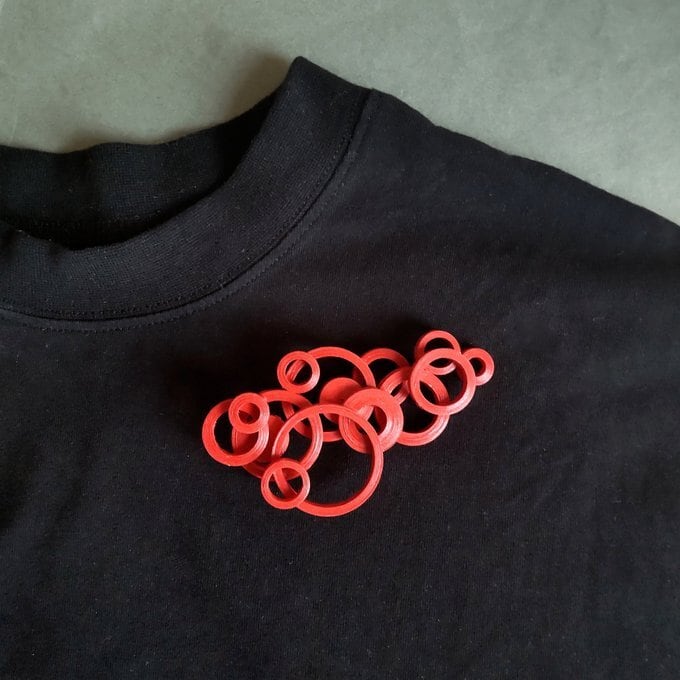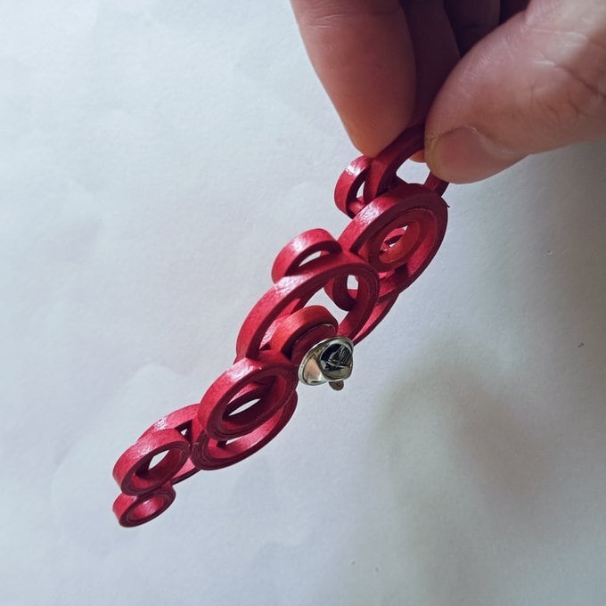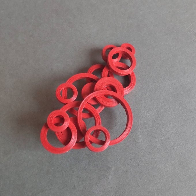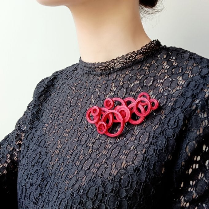 大小の輪のパーツをいくつも組み合わせ、個性的な形に仕上げました。