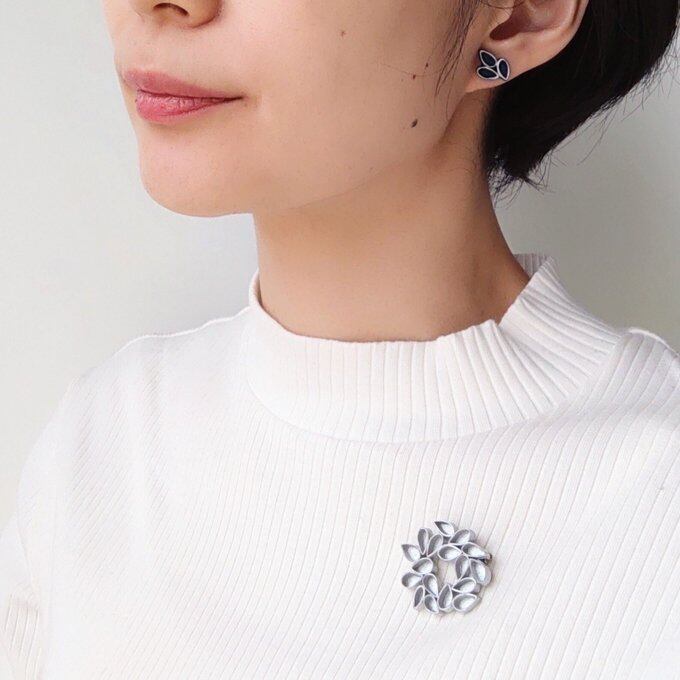 アクセサリーは、例えばブローチですと重みがあるとお洋服が引っ張られたり、肩に負担がかかってしまいますが、こちらの作品は2gととても軽く、気軽に着けていただけます。