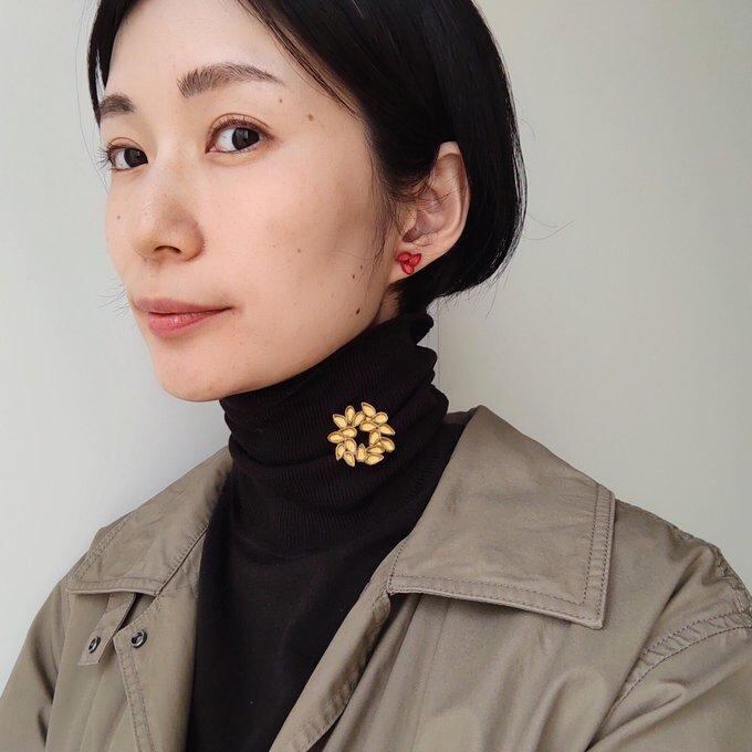 赤いリップを塗ったときのように、赤いピアス(イヤリング)を身につけると顔色が明るく見えます。