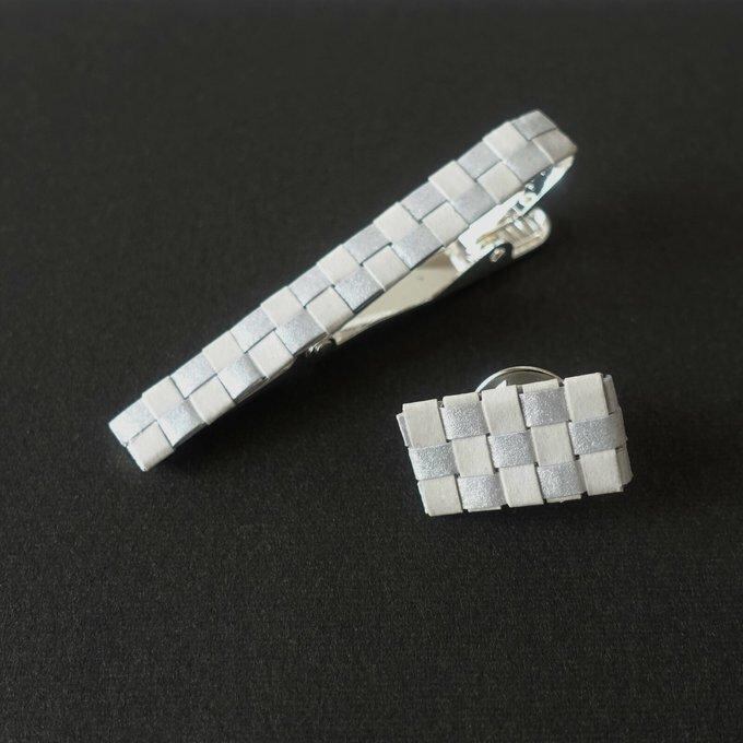 紙製の、縁起柄「市松模様」ネクタイピン&ピンブローチ(タックピン)のセットです。
