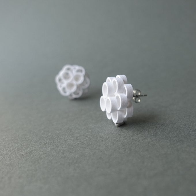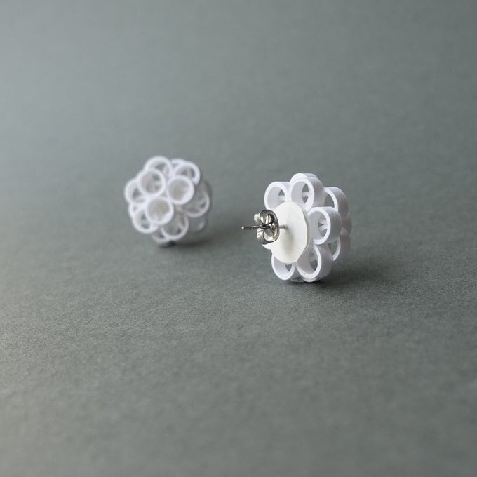 紙で作った小さな円を並べて、まるでお花のようなアクセサリーに仕上げました。